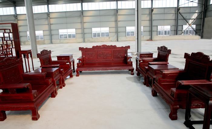 江蘇中尊木業有限公司客廳系列產品:博古架、皇冠圈椅三件套、皇冠圈椅三件套、如意茶桌六件套、如意供枱、沙發(fā)十件套、組合電視柜等。